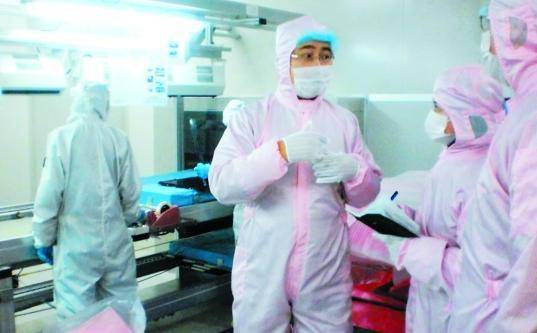 穿上寬大的連體無塵服,戴好防塵手套和帽子,把褲腳扎進(jìn)鞋套,套上口罩。經(jīng)過一番“全副武裝”,記者被風(fēng)淋室的潔凈強(qiáng)風(fēng)吹除身體塵埃之后,得以進(jìn)入貴陽海信新建的模組車間,一窺企業(yè)最神秘的生產(chǎn)場(chǎng)所。