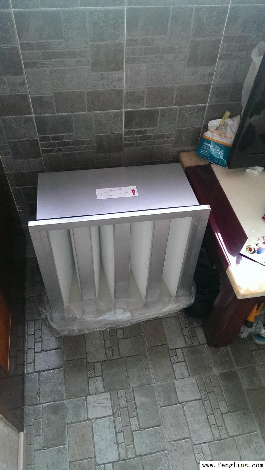 實際上 行業中 有大量的V形的高效過濾器 比I形的 進氣面積更大 很容易找到了現成的產品 VVVV形的高效過濾器 可惜 這個東西不是為FFU生產的 規格不一樣 是595*595的 比FFU大了 裝不上 沒法子 只有再次去欺騙工業領域的朋友 再次謊稱我有大量的需求 但是需要樣品檢測 如愿用500的價格 定制到了575*575規格能套在FFU上的VVVV形高效過濾器